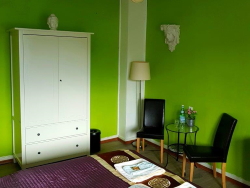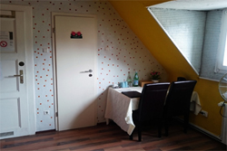 Es gibt insgesamt fünf frisch renovierte Nichtraucher Doppelzimmer in der 1. und 2. Etage, Größe von 12 - 20 qm, Bettgrößen: 140-180 cm Breite. Zwei Zimmer zur Straße, die drei anderen sehr ruhig mit Blick auf den großen, grünen Garten.