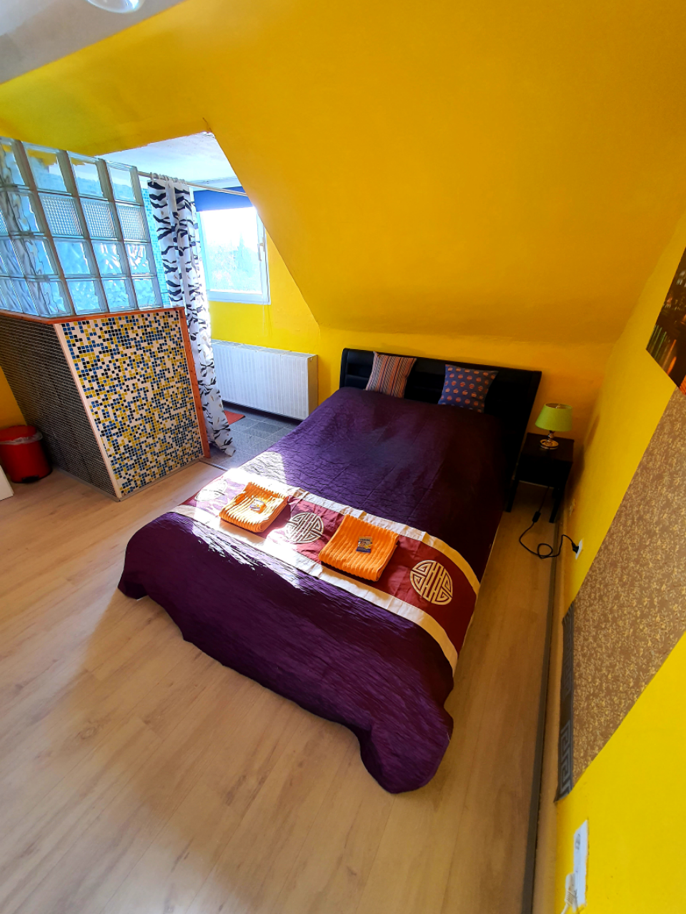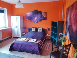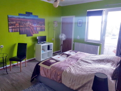 20 qm, Großes Doppelbett mit 160 cm Breite, Flachbildschirm mit DVB-T, W-LAN DSL, Seife, weiche Handtücher, Bettwäsche, eine große Flasche Wasser, sicher abschließbares Zimmer, Informationsmappe, Dusche und Toilette auf dem Flur, Gartenblick.
