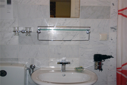 20 qm, Bett 180 cm Breite, 80cm Flachbildschirm mit DVB-T, W-LAN DSL, Fön, eigenes Badezimmer aus Marmor mit Toilette, Waschbecken und Dusche,Pflegeartikel, kostenloser Tee auf dem Zimmer, Wasserkocher, Kosmetiktücher, weiche Dusch- und Handtücher, Bettwäsche, eine Flasche Wasser, sicher abschließbares Zimmer, Informationsmappe.